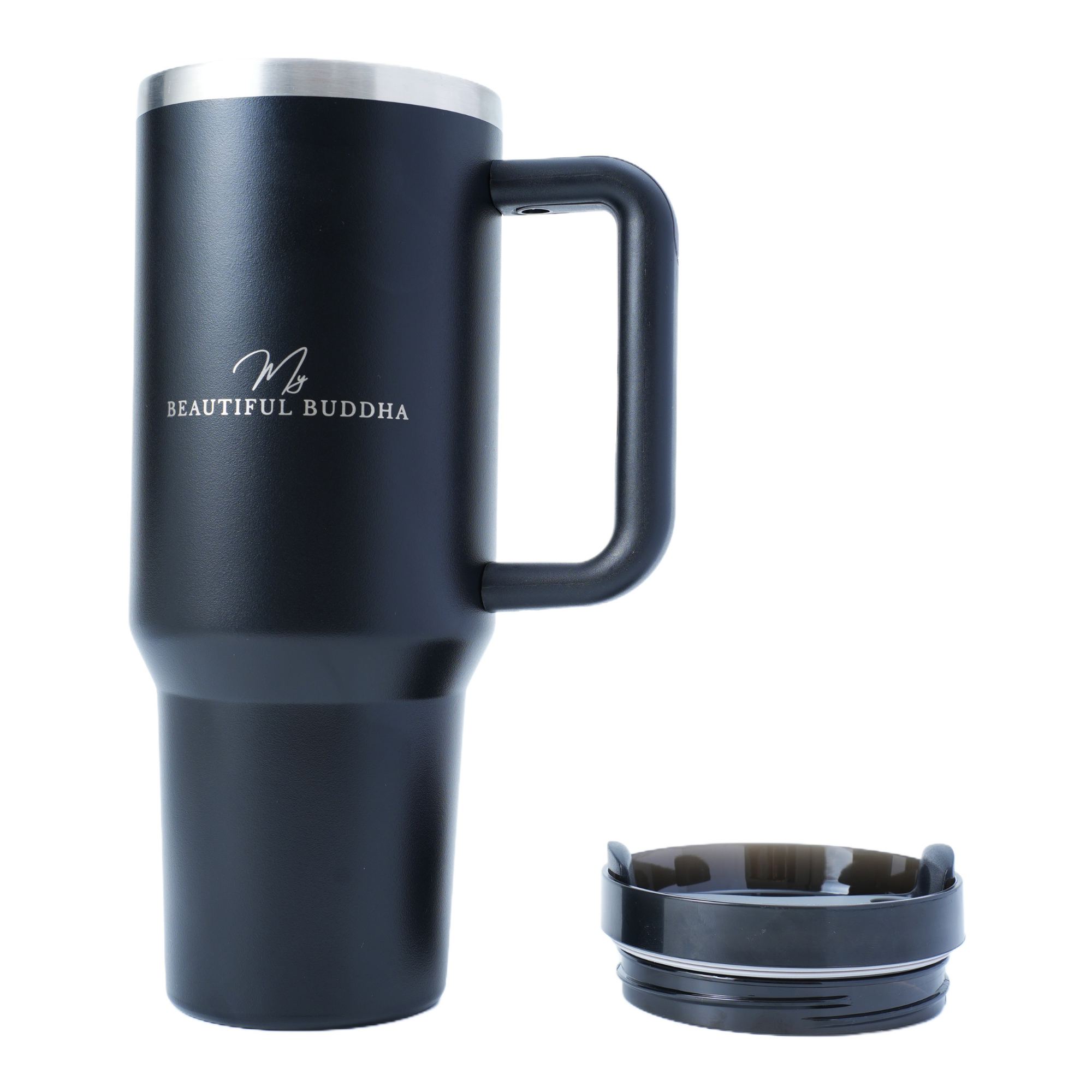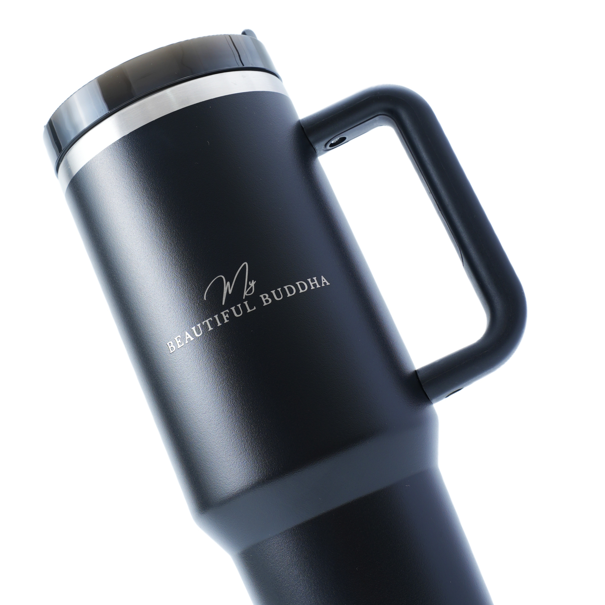 The soft-touch matte powder coat provides a stable, tactile grip and resists abrasion, fingerprints, and scuffing. Each bottle features a precision laser-etched My Beautiful Buddha emblem for lasting authenticity. The wide-mouth design allows effortless refilling, ice additions, and cleaning, while the splash-resistant lid incorporates dual silicone sealing for secure closure without stiffness.