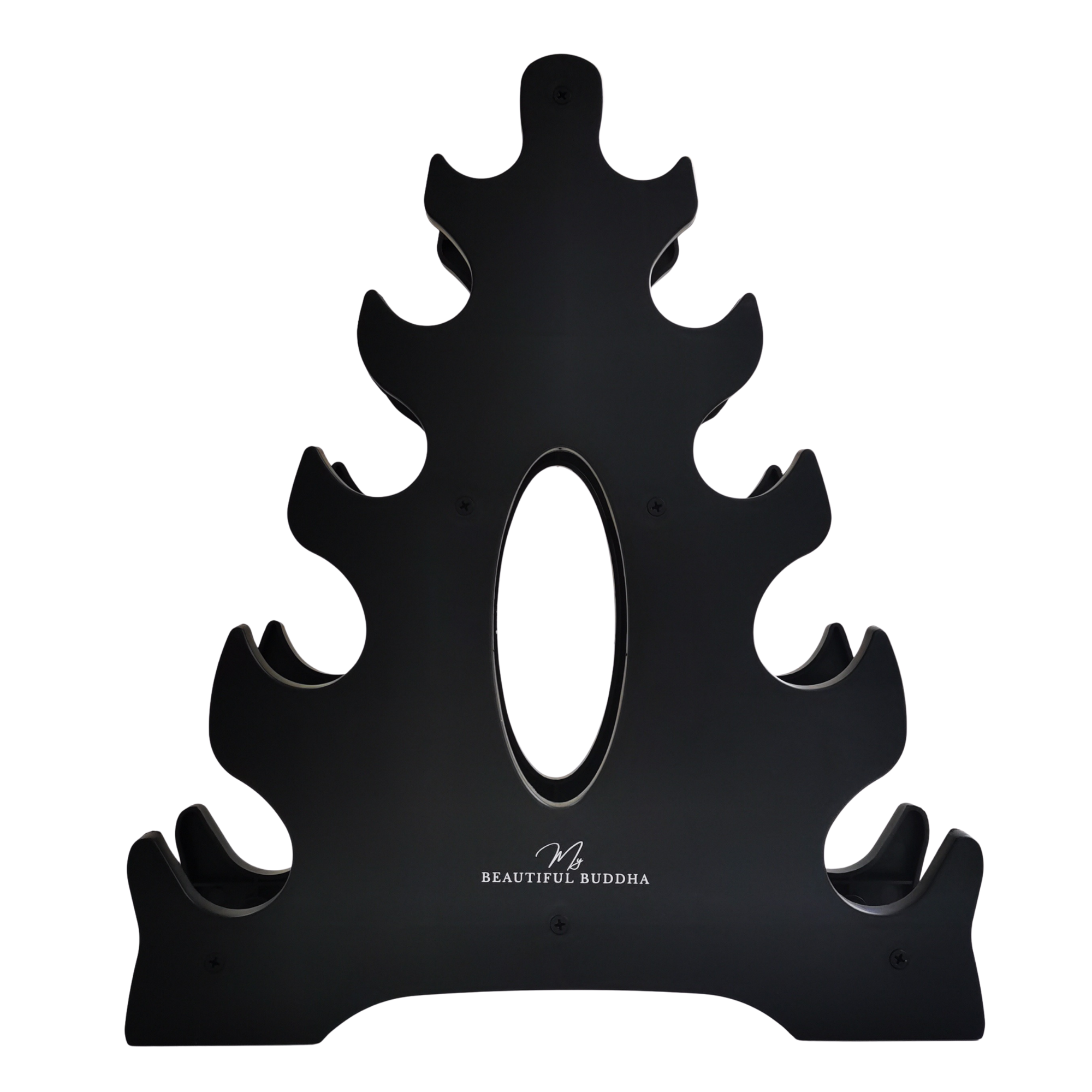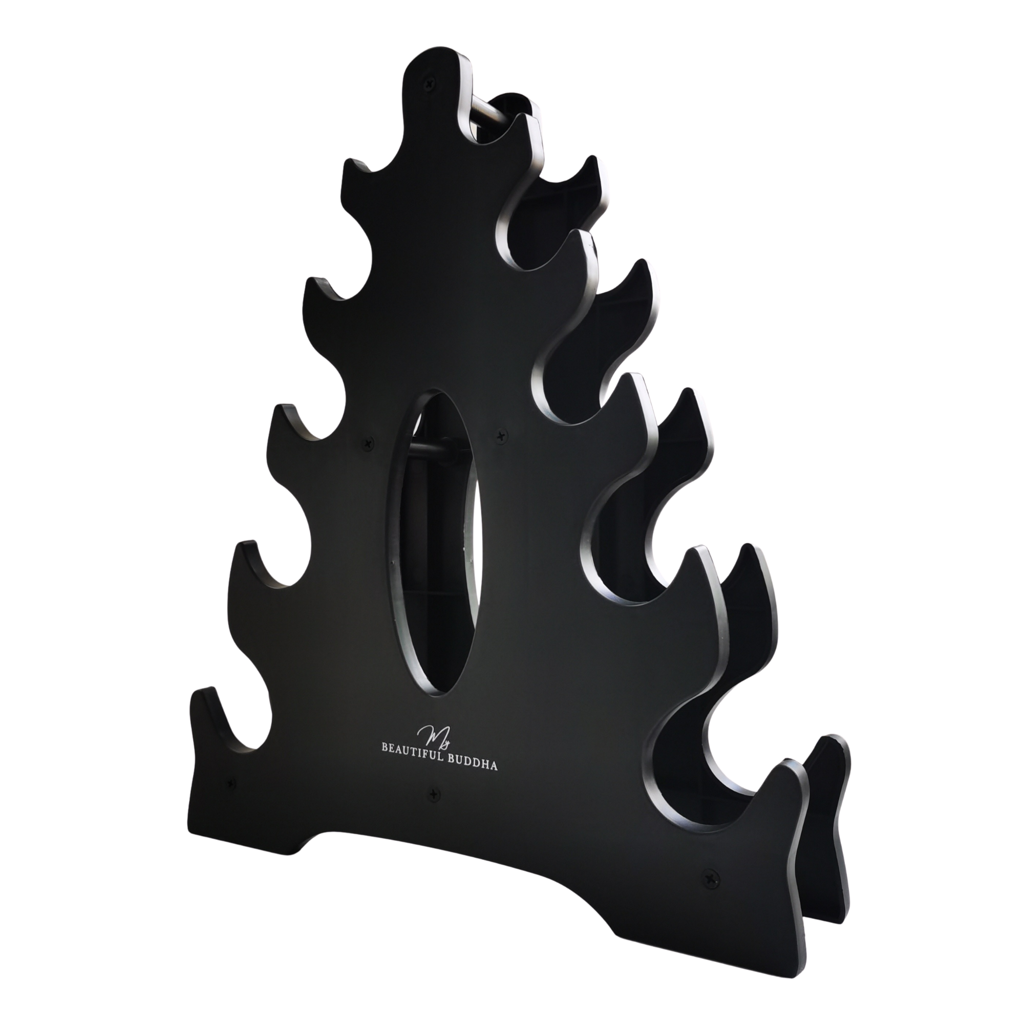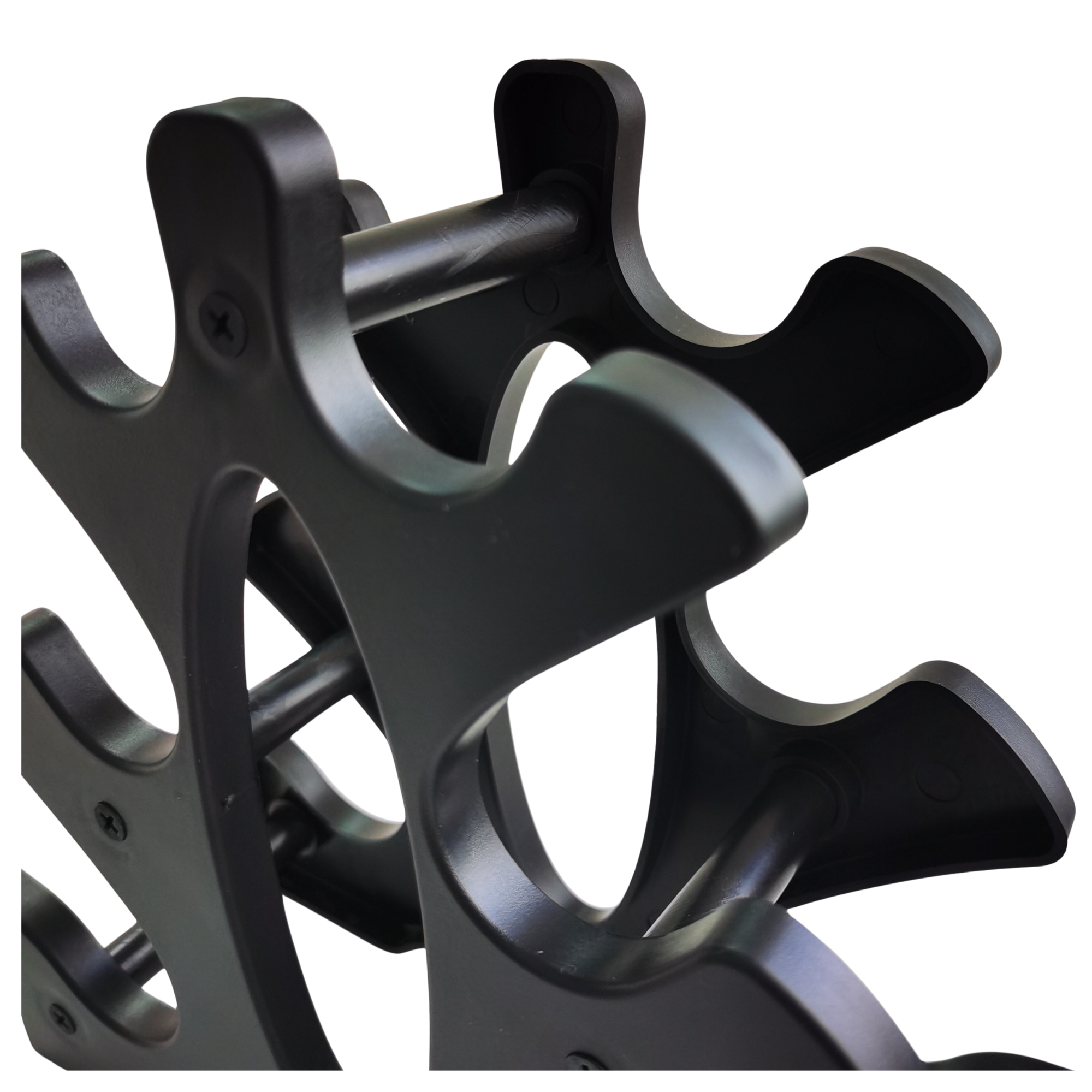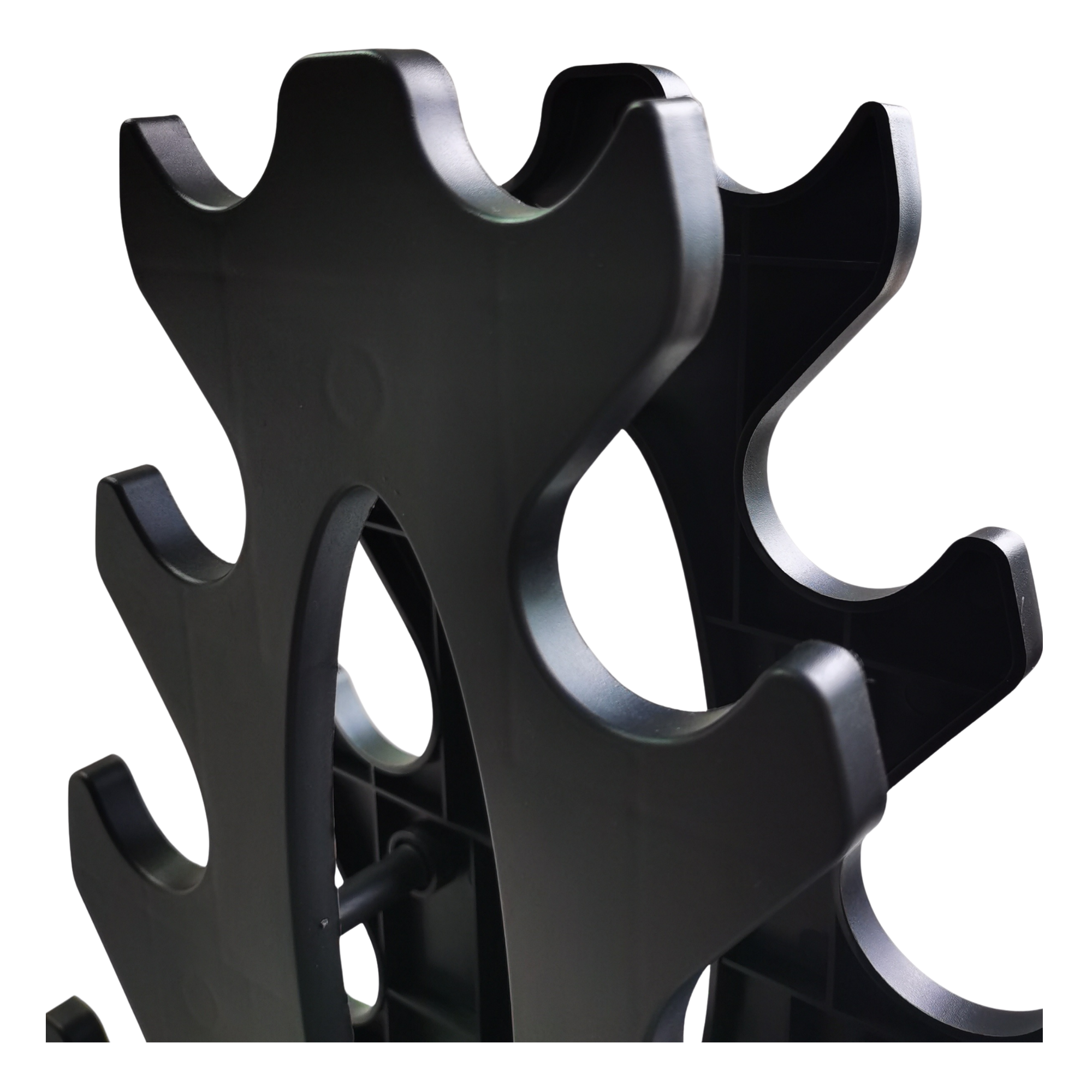Each cradle is contoured to hold neoprene or coated dumbbells securely, preventing rolling or surface contact that can damage flooring. Tier spacing is designed for easy access during transitions between exercises, helping maintain rhythm and flow through a session.