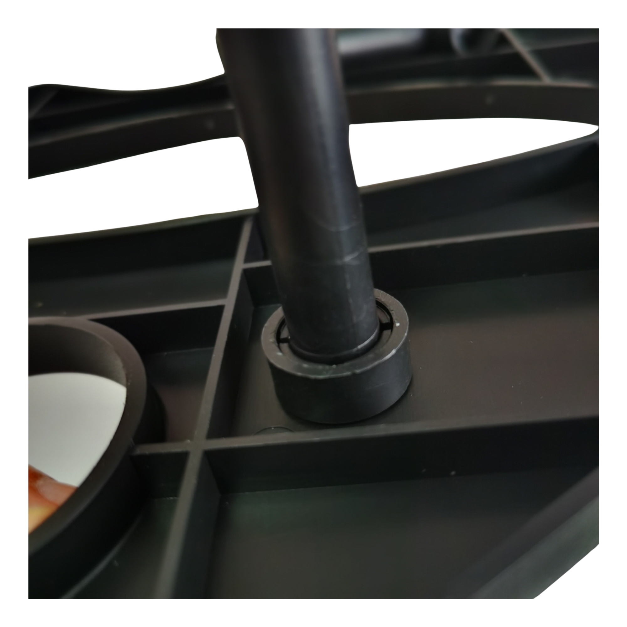 Assembly is quick and straightforward. The interlocking ABS panels align precisely to form a unified frame that resists torsion and movement. Once connected, the single-piece base sits securely without marking or shifting, keeping the rack steady and safe during use.