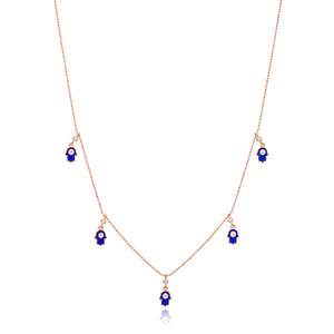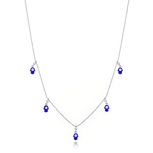 Sterling Silver Blue Enamel Hamsa Charm Necklace