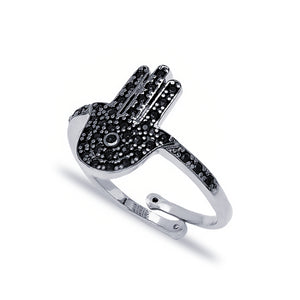 Sterling Silver Hamsa Adjustable Ring