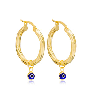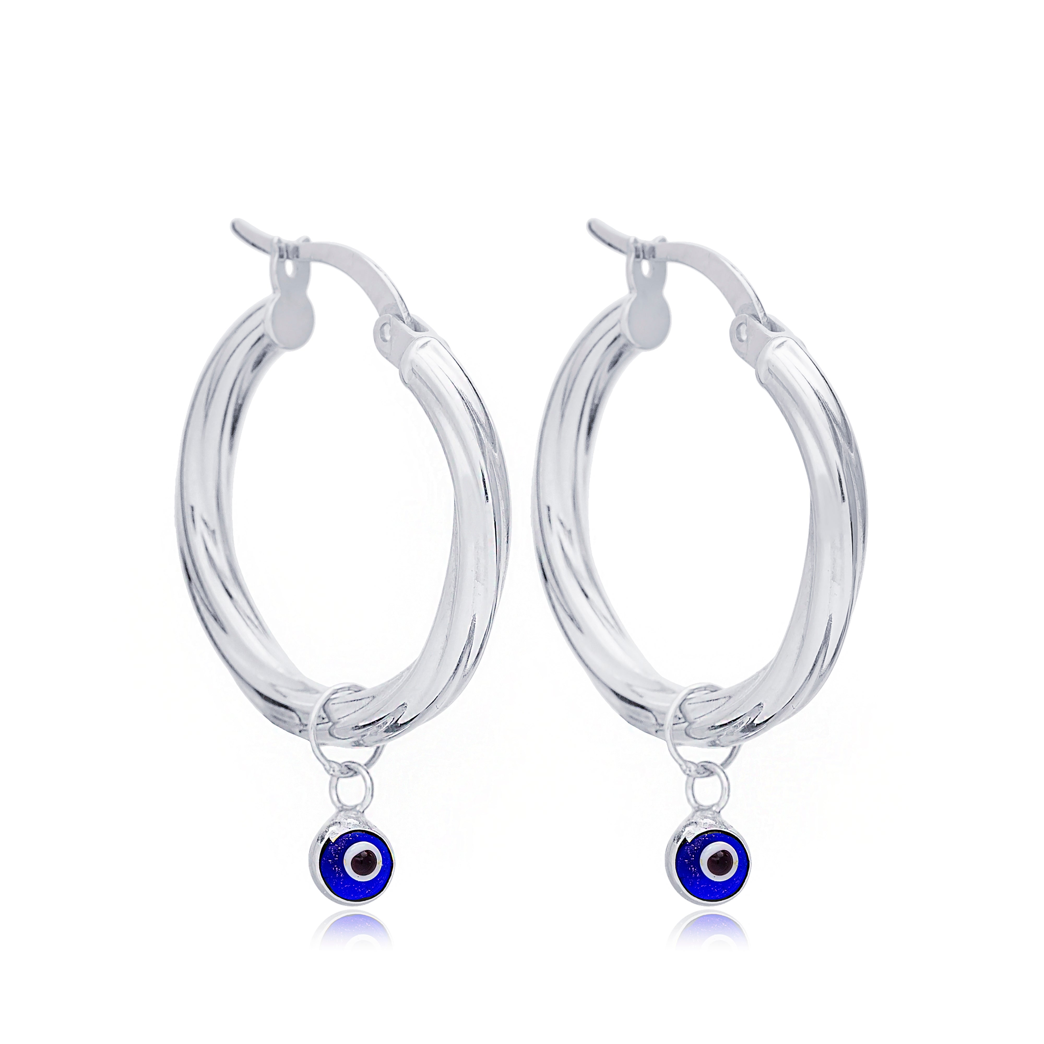 Sterling Silver Hoop Earrings with Minimalist Evil Eye
